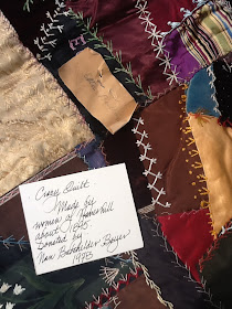 2. A disorderly mixture; a hodgepodgeI must confess that I am not generally a fan of the "crazy quilt" but this particular one captured my eye and my imagination. There is a lush, almost regal quality to the fabrics and the various monograms of the women who created the quilt. In fact, the letters are reminiscent of the "floriated" letters of Medieval illuminated manuscripts - richly and abundantly embellished, starting off the page or the story.